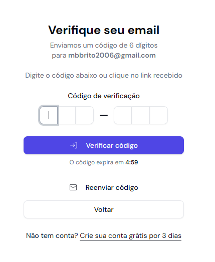 (⚠️ Importante: O código expira em 5 minutos. Se o tempo acabar, clique em “Reenviar código” para solicitar um novo.)