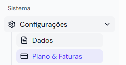 Clique em Plano & Faturas na aba de Configurações do menu lateral esquerdo do dashboard.