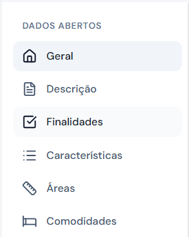 Procure pela opção de Finalidade no barra lateral em Dados Abertos