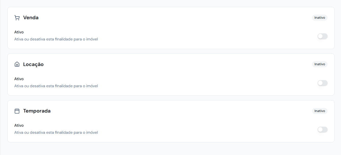Selecione a opção desejada para o Imóvel e ative