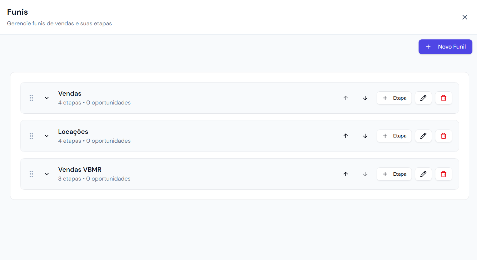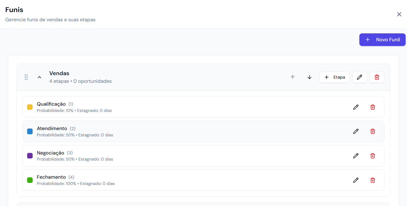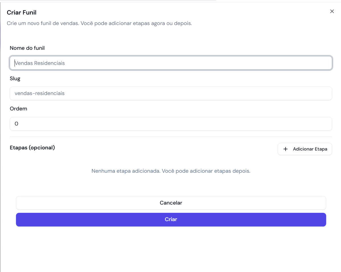 Para finalizar basta clicar em Criar e o novo Funil de Venda ficará disponível no Dashboard