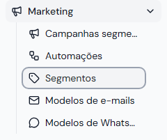 Acesse Marketing no menu lateral e clique em Segmentos