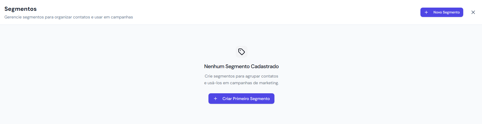 Clique em Criar Primeiro Segmento ou Novo Segmento