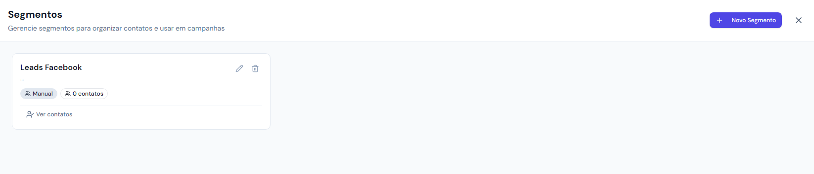 Clique em Criar Segmento e seu segmento estará salvo na lista